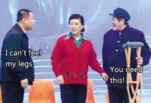 一个姿势坐久了,腿就发麻,“麻”这个字还真难翻,但是我们另辟蹊径,翻译成“无法感知”就OK啦。如果手麻了,就是I can’t feel my hands.