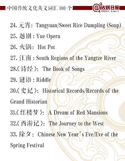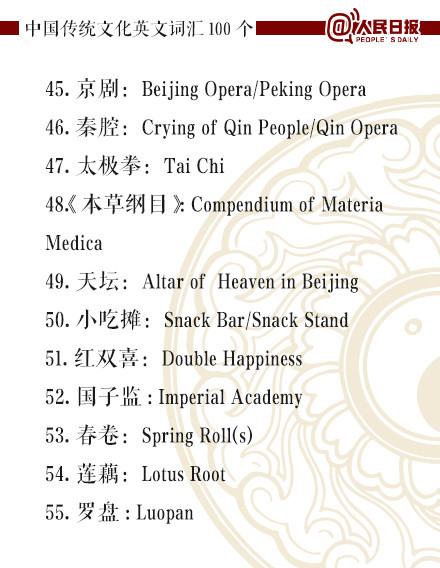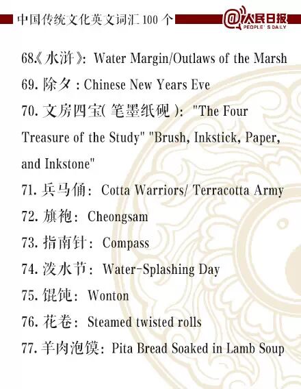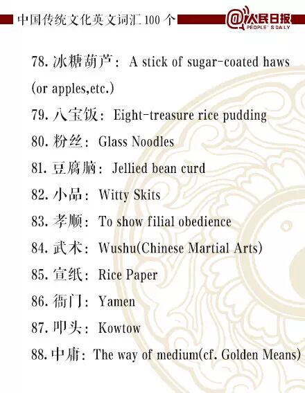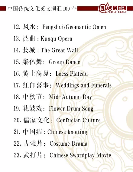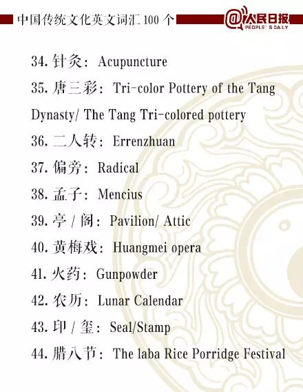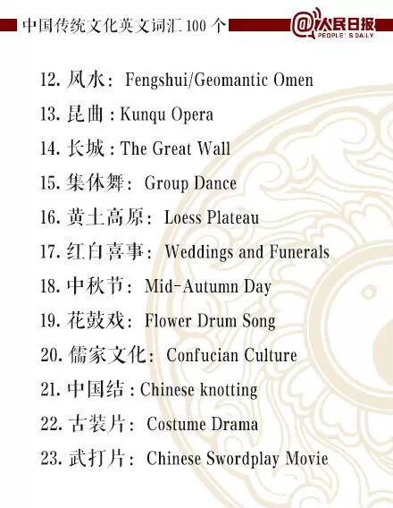 100个中国传统文化相关的名词,你都会用英语表达吗?