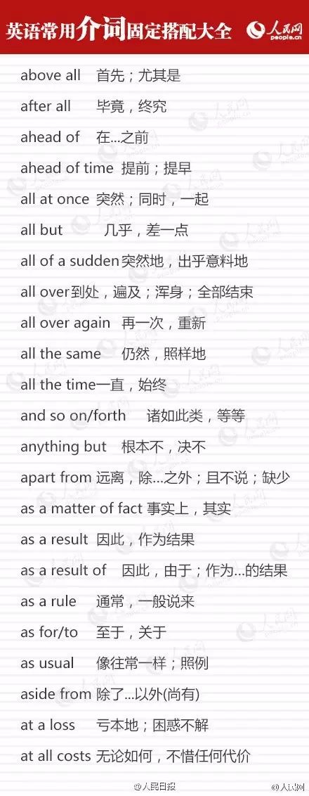 英语常用介词固定搭配大全,都在这里了!