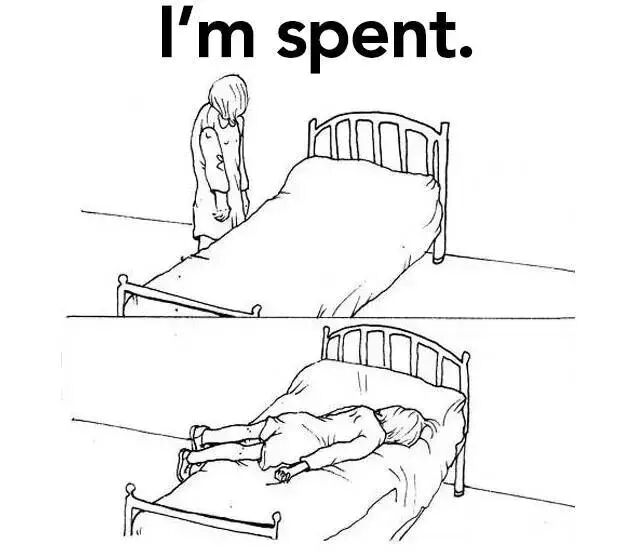 7.I'm spent.